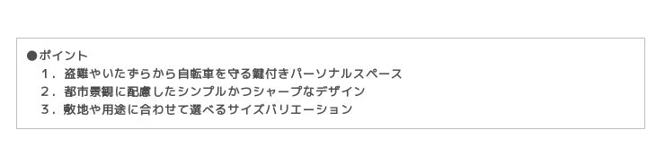 1.盗難やいたずらから自転車を守る鍵付きパーソナルスペース
