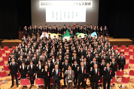 全国46都道府県にパチンコホールを展開する株式会社ダイナム(本社:東京都荒川区西日暮里 代表取締役:保坂 明)は、2026年4月1日(水)、日暮里サニーホール(東京都荒川区)にて入社式を執り行いました。本年度は10年ぶりに100名を超える119名の新入社員を迎え入れ、新たな仲間と共に企業成長を加速させます。新入社員は5泊6日の導入研修プログラムを修了後、各店舗へ配属される予定です。