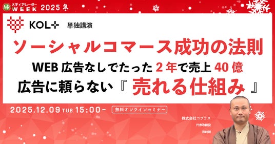 株式会社アイズ(所在地:東京都渋谷区、代表取締役社長:福島範幸、東証グロース:5242)が運営するNo.1*の広告業界のプラットフォーム「メディアレーダー」が主催するマーケティングセミナーイベント「第20回メディアレーダーWEEK 2025 冬」にて、株式会社コプラス様が12/9(火)に登壇します。視聴申し込みは無料です。