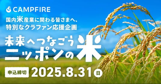 株式会社CAMPFIRE(本社:東京都渋谷区、代表取締役:中島真、以下CAMPFIRE)は、日本の米文化と産業の未来を支援する「未来へつなごう、ニッポンの米・応援キャンペーン」を2025年7月15日(火)より開始しました。