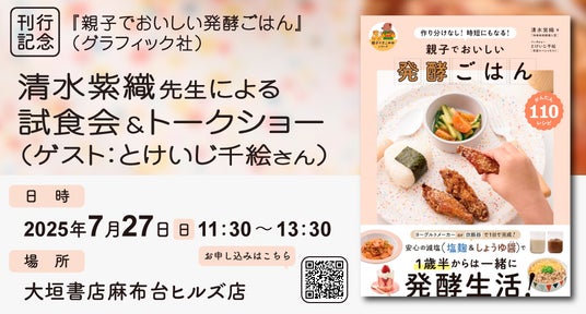 実施されるイベントでは、本書に掲載しているレシピの試食や、発酵調味料を仕込むデモンストレーションなどを行うほか、親子で楽しめる発酵ごはんや、食育についてを、著者で発酵のプロ・清水紫織さんと、食育のプロ・とけいじ千絵さんがお話するトークイベントなど盛りだくさんです。