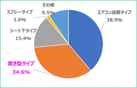 また、香りを重視した製品の構成比をタイプ別でみると、「エアコン設置タイプ」が38.9%と一番多く、次いで「置き型タイプ」が34.6%となり、24年には前年比107.8%と人気が高まっています(※2)。
