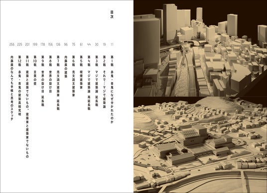 はじめに/第1戦 赤鬼・青鬼になぜ分かれたのか/第2戦 それで…マジで建築論/第3戦 マジで建築論 延長戦/第4戦 マジで建築論 再延長戦/第5戦 喫煙建築家/第6戦 売文読文建築家/内藤廣の建築/第7戦 売文読文建築家 延長戦/第8戦 世界の裂け目/第9戦 世界の裂け目 延長線/第10戦 言葉の壁/第11戦 建築と建築でないもの、建築家と建築家でないもの/第12戦 赤鬼・青鬼の建築真相究明/内藤廣のなんでも手帳と思考のスケッチ/赤鬼を静かに煽る青鬼 宮沢洋(BUNGA NET編集長)/あとがき