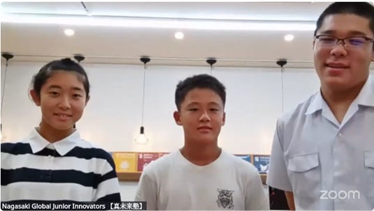 最優秀賞受賞の喜びを語るNagasaki Global Junior Innovatorsのメンバー