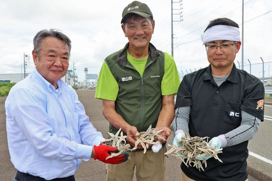今回、新たな持続可能な取り組みとして、常滑市鬼崎漁業協同組合が駆除するヒトデ約20kgを、農作物を荒らすシカやイノシシを寄せ付けない「鳥獣忌避剤」として、岐阜県大野町で里山保全に取り組む「野村緑の会」へ提供する、海と山をつなぐSDGs循環プロジェクトが始動しました。