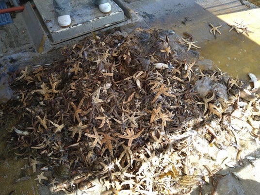 <駆除されていたヒトデの山>