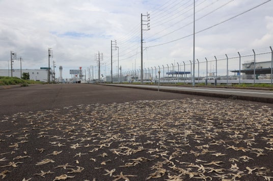 1年間の実証実験の結果、シカやイノシシによる食害が大幅に減少し、ヒトデによる忌避効果を確認した大野町は継続的な活用を希望。鬼崎漁協も提供を快諾したことから、今回セントレアが両者をつなぐ橋渡し役として、譲り受けたヒトデを天日干しし、受け渡しの準備をしました。