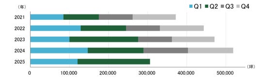 成約面積はリーシング活動の活発度を表す指標である。2025年第2四半期の成約面積は対前年同期比でプラスとなり、2025年上半期の合計でも前年同期を上回った。リーシング活動は活発な状態が続いている。