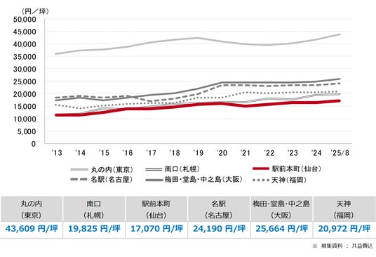 三幸エステート株式会社(本社:東京都中央区、取締役社長:福島正二郎)は、2025年8月度の仙台市オフィス賃貸状況(空室率&現空面積:全規模、募集賃料&募集面積:全規模、規模別空室率、主要エリア※1空室率:全規模)および全国6大都市(東京・札幌・仙台・名古屋・大阪・福岡)の大規模ビルのマーケットデータをまとめた「オフィスマーケット2025年9月号仙台」を公表します。
