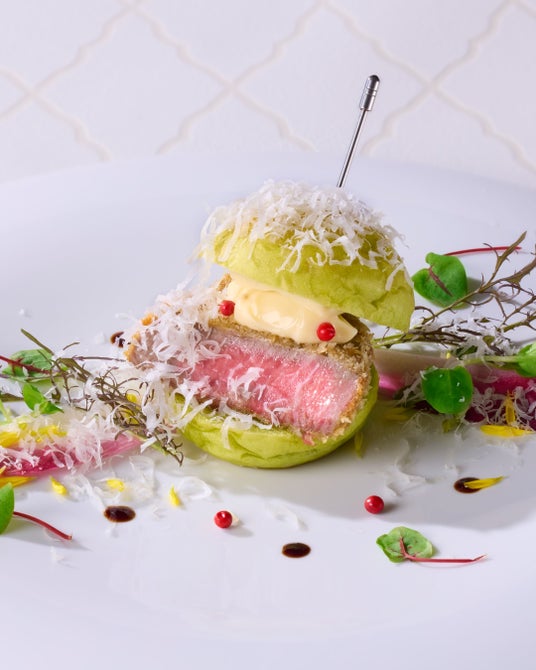 詳細:やわらかな五島牛ヒレ肉に、削りたてのパルミジャーノ・レッジャーノを贅沢に合わせて。 仕上げのひと手間まで魅せる、五感で楽しむライブ感もご堪能ください。