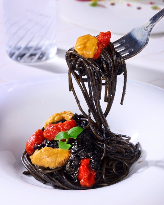 メニュー名:五島雲丹が乗ったイカスミパスタ