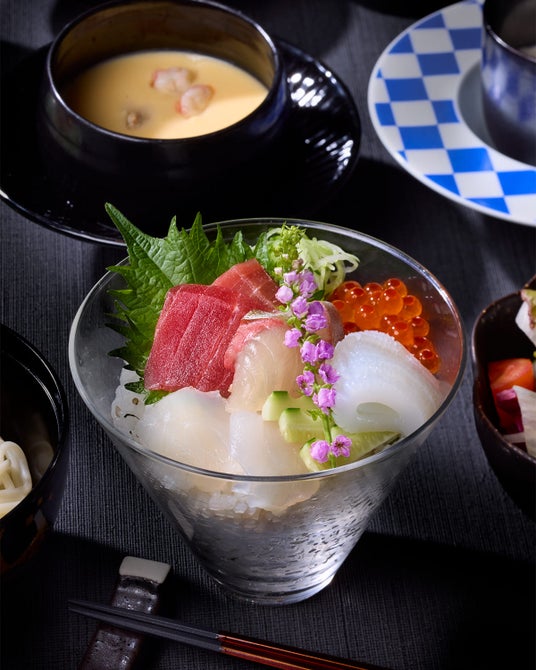 詳細:五島近海で獲れた新鮮な海の幸を、彩り豊かに盛り付けた華やかな丼御膳。 目にも美しく、味わい深い一品です。