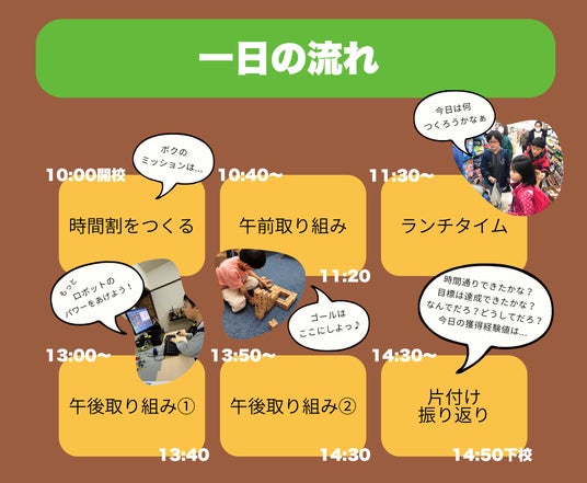 自分の選択・行動次第で変わる未来1日のスタートは自分自身の計画から始まります。時間割は、既存のものから自由に選択も可能。慣れたら自らの課題や目標に対しミッションをつくります。ランチも火起こしから行うなど必要なものは何でも自ら創り出していきます。