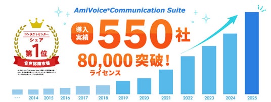株式会社アドバンスト・メディア(本社:東京都豊島区、代表取締役会長兼社長:鈴木清幸 以下、アドバンスト・メディア)が提供する、国内シェアNo.1(※1)のコンタクトセンター向けAI音声認識ソリューション「AmiVoice Communication Suite」が、導入実績550社・80,000ライセンスを突破しました。