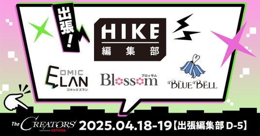 株式会社HIKE(本社:東京都新宿区、代表:三上 政高、以下「HIKE」)の電子漫画出版事業を担う「HIKE編集部」は、クリエイター総合イベント『The CREATORS』(日程:2025年4月18日・19日、会場:秋葉原UDX 2F AKIBA_SQUARE + UDX Gallery NEXT)に出展いたします。イベント当日は「出張編集部」エリアにて、みなさまの作品をお待ちしております。