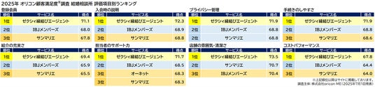 『結婚相談所』評価項目別ランキング(2025年 オリコン顧客満足度(R)調査)