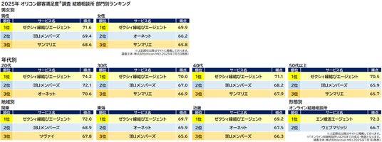 『結婚相談所』部門別ランキング(2025年 オリコン顧客満足度(R)調査)