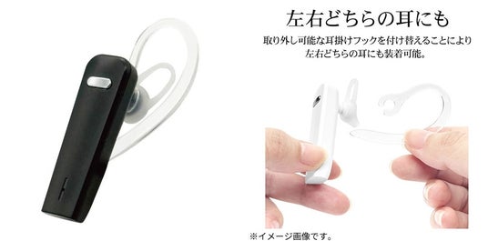 Bluetooth搭載のスマートフォンなどで使用できるハンズフリー対応のワイヤレスモノラルイヤホン。スマホを手に持たずに通話ができるため、テレワークや作業中の使用に最適です。長時間の装着でも耳が痛くなりにくいシリコン製の耳掛けフックが付属しており、接続設定も簡単に行えます。移動中やデスクワークの利便性を高める、シンプルで実用的な一台。※Bluetooth非対応機器は使用不可