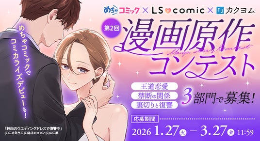 株式会社アムタス(東京都港区 代表取締役社長 児玉隆志) は、提供する電子コミック配信サービス「めちゃコミック(めちゃコミ)」と、ラノベ、コミックなどを刊行する株式会社KADOKAWA(本社:東京都千代田区、取締役 代表執行役社長 CEO:夏野剛)が運営するWeb小説サイト「カクヨム」は、共同でWEB上にある新たな作品の発掘を目的とした第2回めちゃコミック×LScomic×カクヨム漫画原作コンテストを開催します。