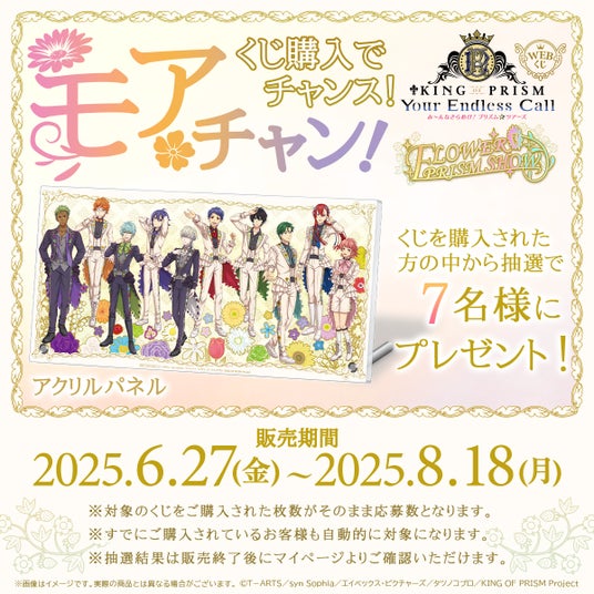 2025年6月27日(金) より、KING OF PRISM WEBくじ第2弾 『FLOWER PRISM SHOW』の販売を開始いたしました。