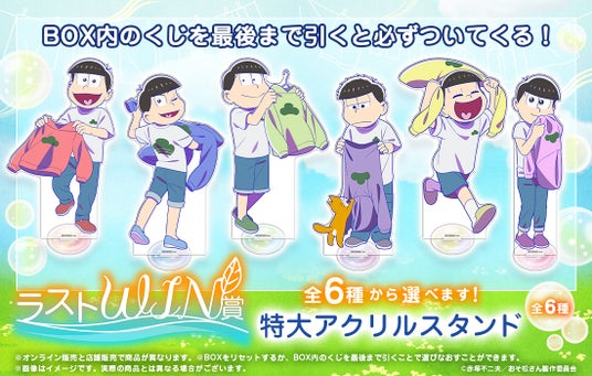 おそ松さんの6つ子の新規描き下ろしイラストを使用したハズレなしのくじです。