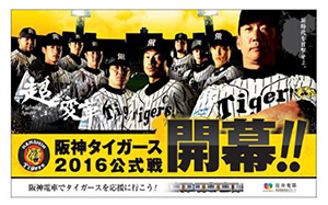 このほか、梅田駅・甲子園駅・神戸三宮駅では、駅装飾を実施。乗務員・駅係員も「超変革」の文字とタイガースのロゴマークが入った缶バッジを着用して、阪神タイガースの2016年シーズンを盛り上げます。