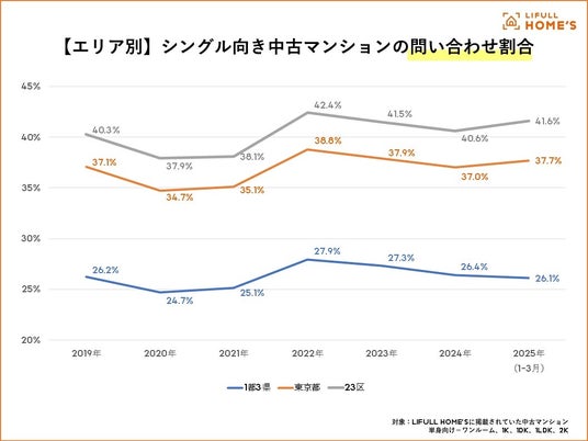 【シングル向き中古マンションの問い合わせ推移】東京23区は全体の4割を超える