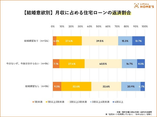 【結婚意欲別:月収に占める住宅ローン返済割合】「結婚願望あり」の方が返済割合が大きい結果に