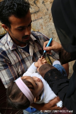 イエメンでは、国中の熾烈な戦闘にもかかわらず、ユニセフの支援による予防接種キャンペーンによって、1月にはしかと風疹の予防接種を240万人の子どもたちに、2016年4月にはポリオの予防接種を460万人の子どもたちに実施しました。