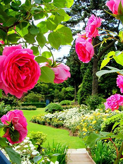 晴れの日は陽射しを浴びて活き活きと爽やかに、雨の日には霧がかかり幻想的に咲くバラを鑑賞できます。