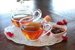 ローズウオークに来園されたお客様にローズティーを振る舞います。ナチュラルローズにパッションフルーツを加えた甘い香りの紅茶です。