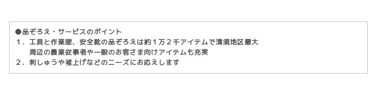●品ぞろえ・サービスのポイント説明