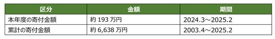 このたび、2024年度の寄付金額を確定しましたので、お知らせいたします。