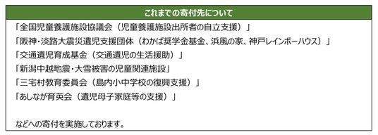 今回の寄付先は「全国児童養護施設協議会」に決定いたしました。