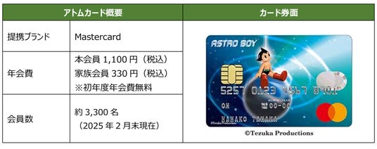 三井住友カード株式会社(本社:東京都江東区、代表取締役 社長執行役員 CEO:大西 幸彦、以下「三井住友カード」)と株式会社手塚プロダクション(本社:東京都新宿区、代表取締役社長:松谷 孝征、以下「手塚プロダクション」)は、社会貢献型クレジットカード「アトムカード」を発行しています。2003年より発行している「アトムカード」は、"子どもたちの夢を形にする"、"子どもたちの未来づくりに何らかの役に立ちたい"という手塚治虫先生の想いが込められており、カードのご利用金額の0.3%が子どもたちのために寄付される社会貢献型のクレジットカードです。