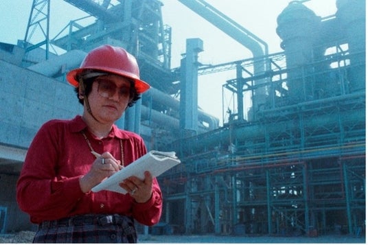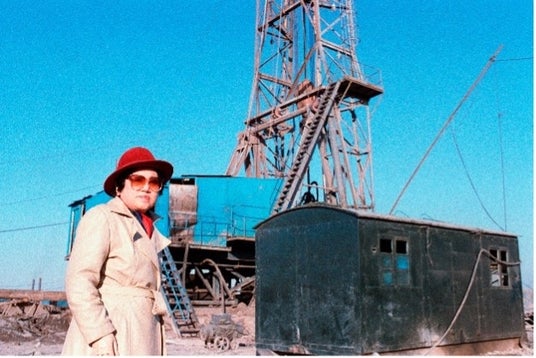 宝山製鉄所と大慶油田を取材中の山崎豊子さん