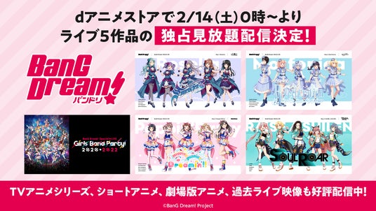 国内最大級※1の7,200作品以上のアニメが見放題※2の「dアニメストア」( https://animestore.docomo.ne.jp/ )は、 「BanG Dream! 」プロジェクトのリアルバンドによるライブ5作品を、2026年2月14日(土)0時より独占で見放題配信いたします。