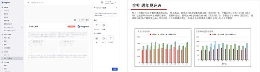 (1)AIレポートビルダー:月次会議資料や取締役会報告書の作成をAIで自動化。実績データの集計に加え、会社で発生した事象を踏まえた業績分析や定性コメントの生成を行い、大幅な業務効率化と経営の意思決定を加速させる報告へのアップデートを図る。