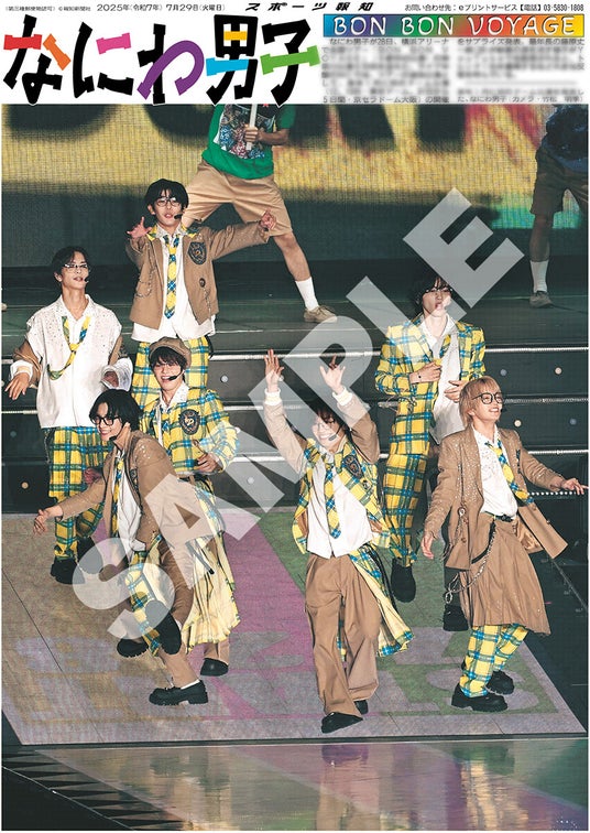 スポーツ報知を発行する報知新聞社(代表取締役社長・長谷川剛)は新聞の一部紙面をコンビニエンスストアのマルチコピー機からプリントできる「スポーツ報知コンビニプリント」サービスを展開中。スポーツ紙ならではの大きな写真を使った紙面をプリント版として販売しています。なにわ男子の全国ツアー「BON BON VOYAGE」横浜アリーナ公演の様子を掲載した7月29日付紙面の販売を開始しました。全8パターンをお届けします。