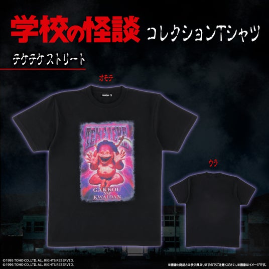 本商品は、映画『学校の怪談』シリーズの印象的なメインビジュアルや、当時の子供たちの恐怖の象徴となった「テケテケ」にフィーチャーしたデザインで、Tシャツやトートバッグのアパレルコレクションを展開します。
