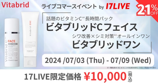 本イベントでは、「17LIVE」で活躍する20名のイチナナライバー(ライブ配信者)が、ビタブリッドジャパン社が手がける、シリーズ累計販売個数2,000万個(※4)を突破したスキンケアブランドである「ビタブリッドシリーズ」から、大人気の「ビタブリッドCフェイス」と「ビタブリッドワン」の『17LIVE限定セット』を、ライブ配信でリアルタイムに紹介し、販売の促進を行います。「ビタブリッドCフェイス」と「ビタブリッドワン」のセット売りでのライブコマースは今回が初めての取り組みとなります。