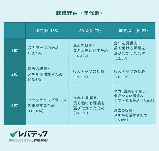 3.40~50代の転職が活発、50代以上は「定年後も長く働ける環境」を重視