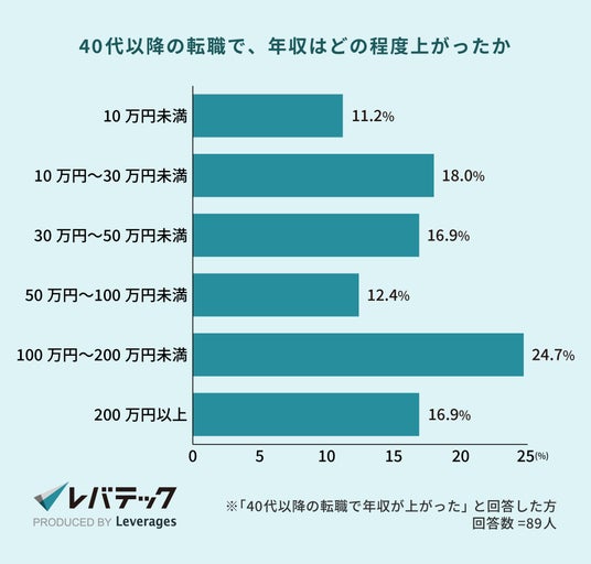 4.約4割が40代以降の転職で「年収が上がった」と回答、100万円超えの増額も