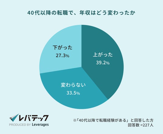 転職経験者のうち約4割が、40代以降の転職で「年収が上がった」と回答しました。
