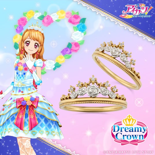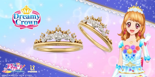 このたびの新作は、主人公 大空あかりちゃんが着用しているドレスブランド「ドリーミークラウン」の“ホワイトスカイヴェールティアラ”をイメージしたリングです。「ドリーミークラウン」ロゴの専用ケースに入れてお届けいたします。