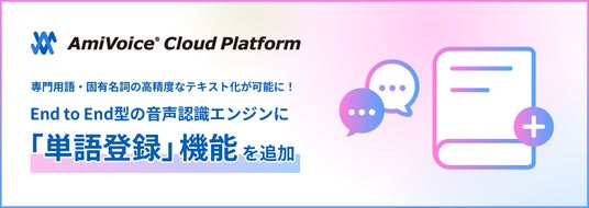 株式会社アドバンスト・メディア(本社:東京都豊島区、代表取締役会長兼社長:鈴木清幸 以下、アドバンスト・メディア)は、開発者向けボイステックプラットフォーム「AmiVoice Cloud Platform(アミボイス クラウド プラットフォーム)」にて提供している、国内シェアNo.1(※)のAI音声認識AmiVoiceを活用した音声認識API「AmiVoice API(アミボイス エーピーアイ)」で提供しているEnd to End方式の音声認識エンジンに、「単語登録」機能を追加しました。