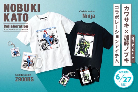 株式会社カワサキモータースジャパン(本社:兵庫県明石市、代表取締役社長:佐伯 健児)は、イラストレーター加藤ノブキ氏とのコラボ商品を2025年6月27(金)より全国のカワサキプラザで発売することをお知らせいたします。カワサキの人気モデルであるZ900RSとNinja ZX-4RRとクールな女性をモチーフにした加藤ノブキ氏描き下ろしイラストのグッズ3型。自分へのコレクションとして、また大切な方へのプレゼントとしてもおすすめです。