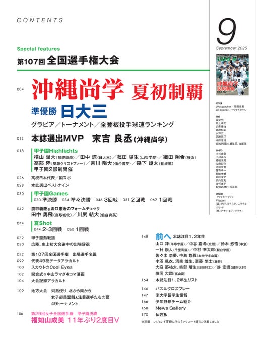 地方大会で敗れたものの話題を集めた選手、チームの奮闘も掲載していますのでお見逃しなく。秋の情報を先取りできる本誌注目1、2年生選手特集&リストも必見です。