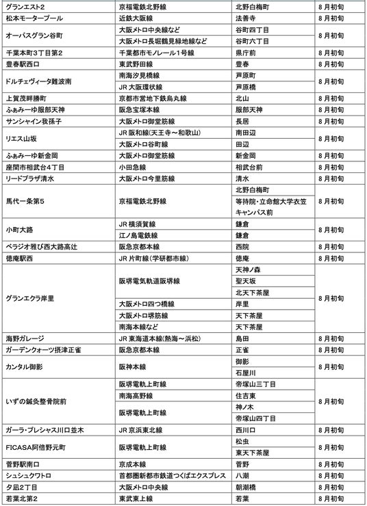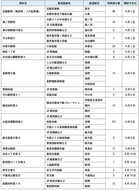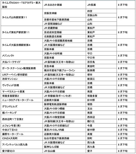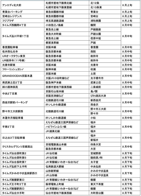 8月にオープンおよびオープン予定の「パーク&ライド」に適した駐車場は28件、「レール&カーシェア」に適したステーションは198件です。