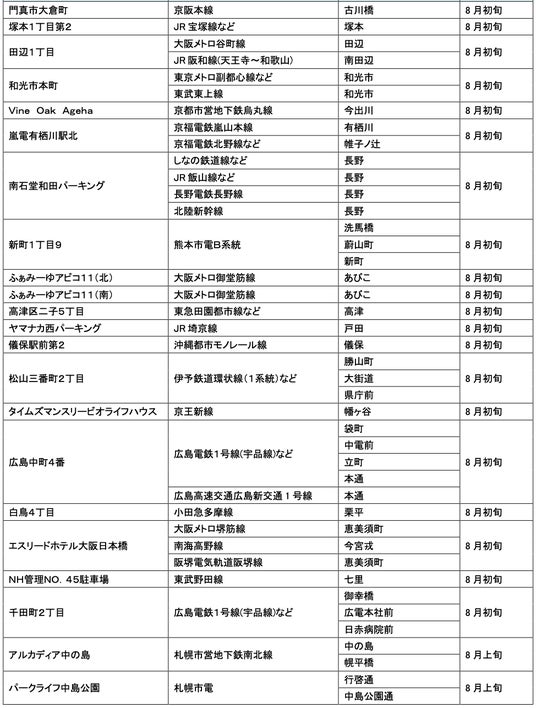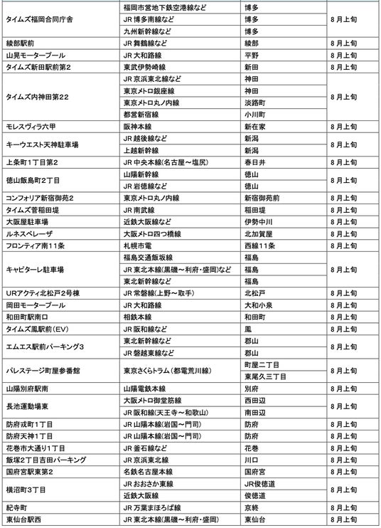 パーク24株式会社(本社:東京都品川区、社長:西川光一)は、温室効果ガスの排出量削減に繋がる移動法「パーク&ライド」および「レール&カーシェア」が可能なタイムズパーキングおよびタイムズカーステーションの2025年8月におけるオープン予定をお知らせいたします。